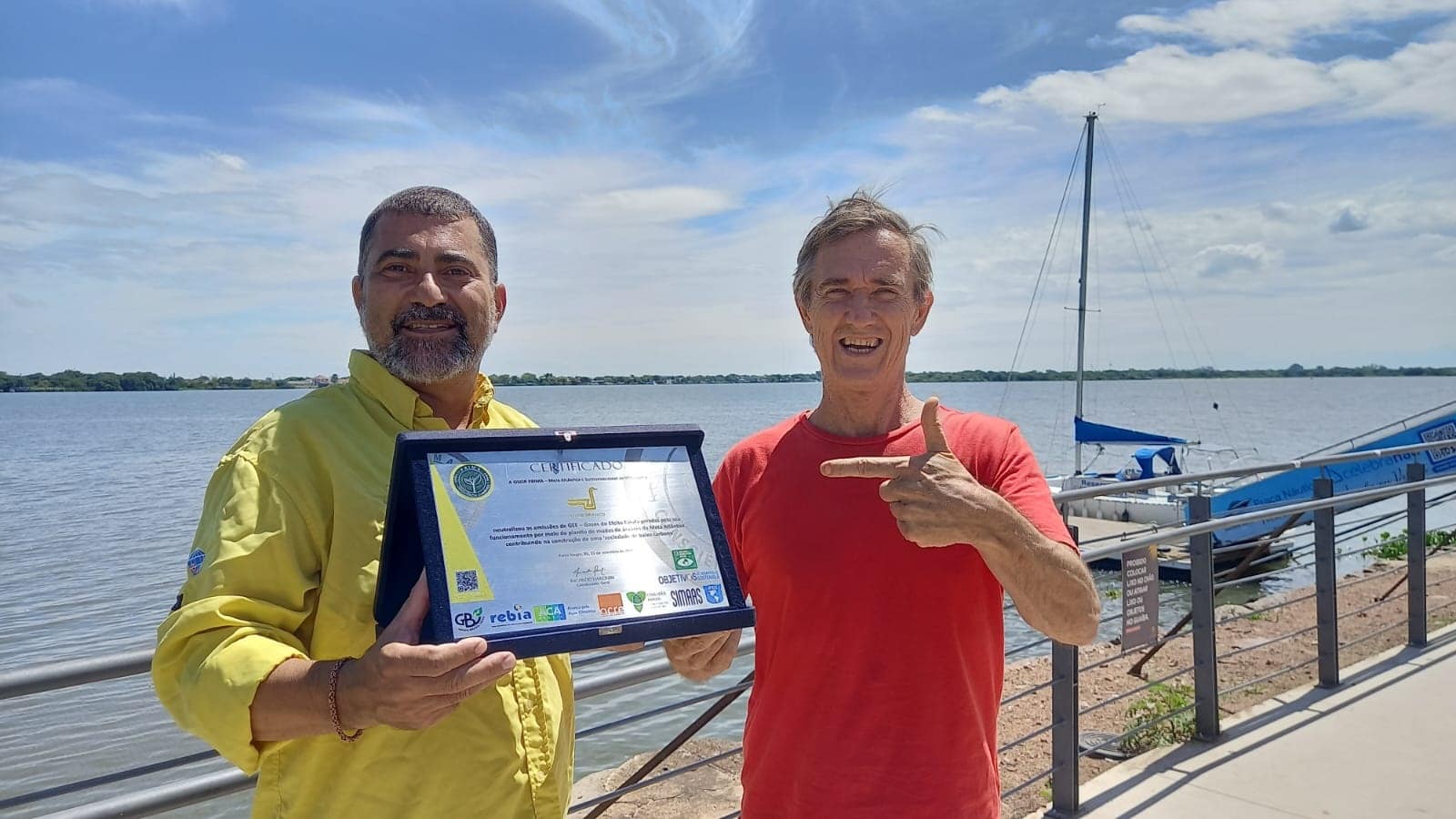 No aniversário do Barco Cisne Branco registramos os frutos dos ODS/ONU, Objetivos Desenvolvimento Sustentável. Dia 23 de setembro de 2021 a empresa e a cidade de Porto Alegre recebiam o professor Ricardo Harduim, da OSCIP PRIMA, durante um passeio pelas ilhas do Guaíba. A certificação incluiu treinamento para tripulantes e colaboradores PEAT, Programa de Educação Ambiental do Trabalhador inspirado no trabalho do jornalista porto-alegrense Wilmar Berna, agraciado com o reconheceimento ONU 500.